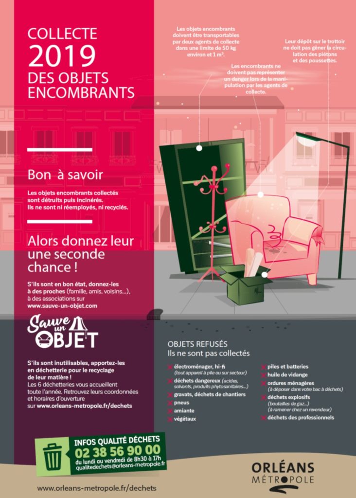Le saviez-vous? Orléans Métropole propose de collecter vos encombrants sur votre commune selon un planning annuel et des règles bien précises. Les objets récupérés sont ensuite détruits et incinérés. Découvrez le planning 2019 ici.
